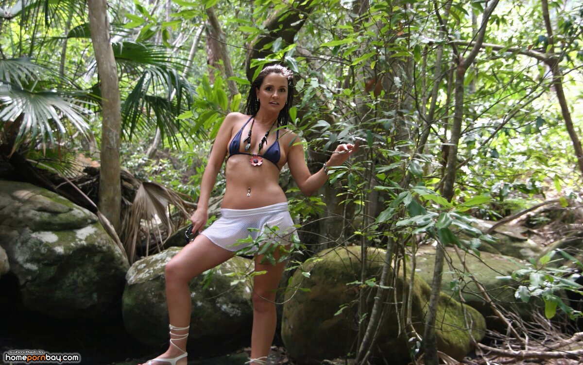 Fit Texas mom Katy flashing rock hard nipples outdoors